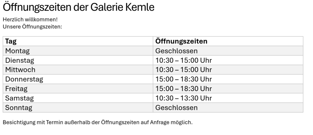 Galerie Kemle in Heidelberg, Brückenstrasse 24, seit 1980.